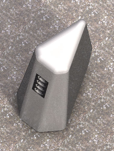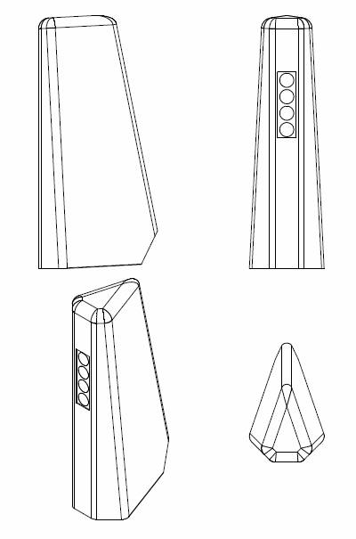 - Base of speaker slopes upwards slightly to allow tilt adjustment.